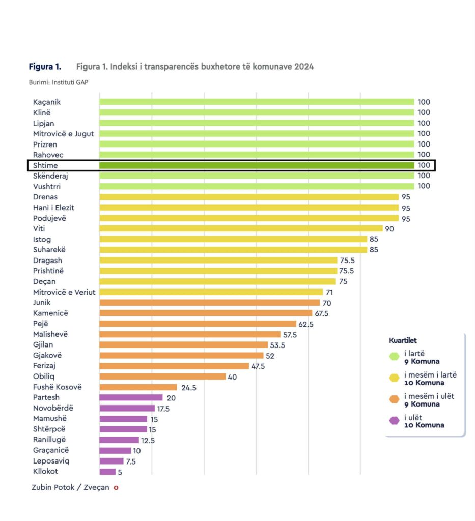 Komuna jonë ka arritur pikët maksimale, 100 dhe është renditur në kuartilin e lartë, duke dëshmuar përkushtimin ndaj transparencës, llogaridhënies dhe informimit të drejtë të qytetarëve.